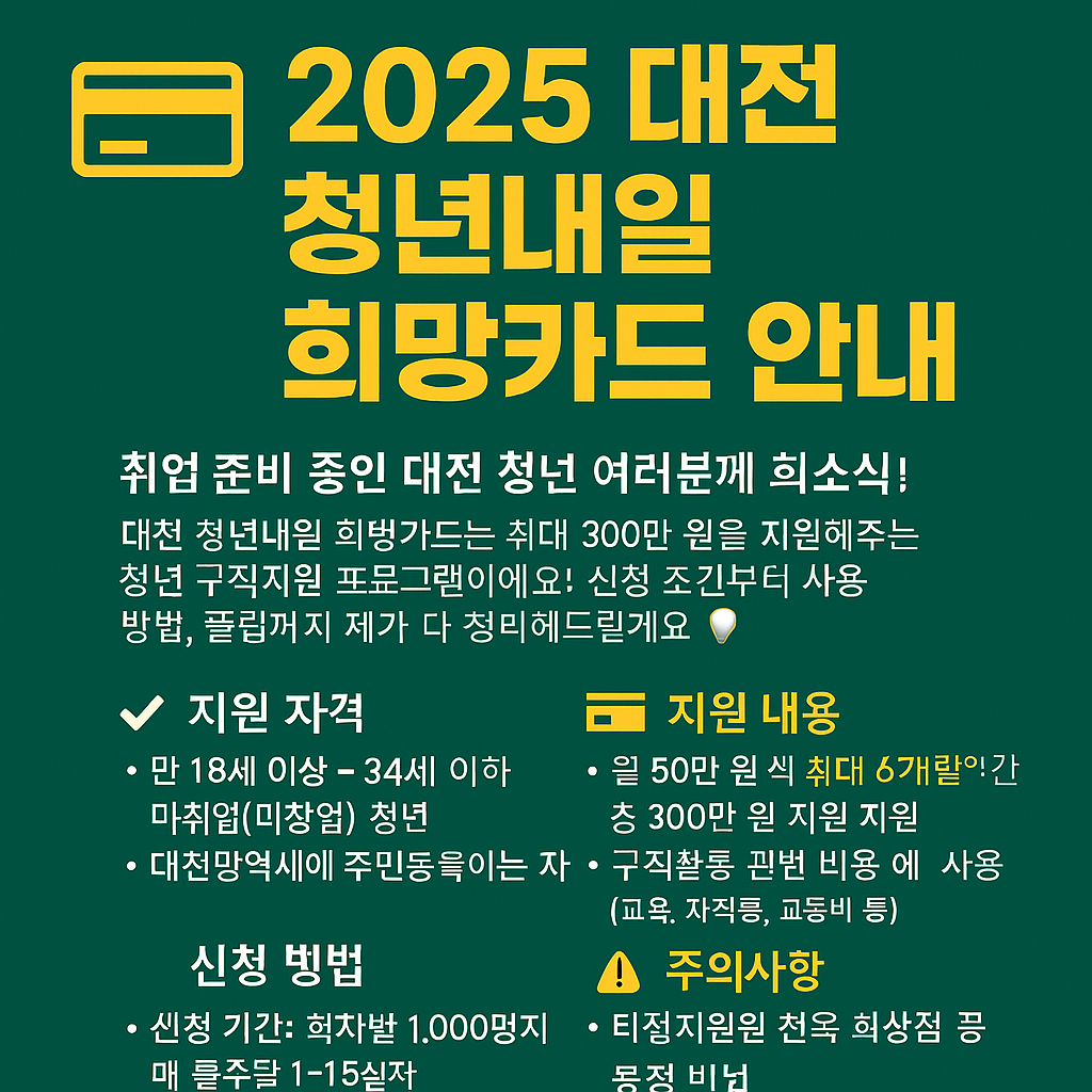 - 💻 온라인 신청: 청년내일희망카드 공식 홈페이지